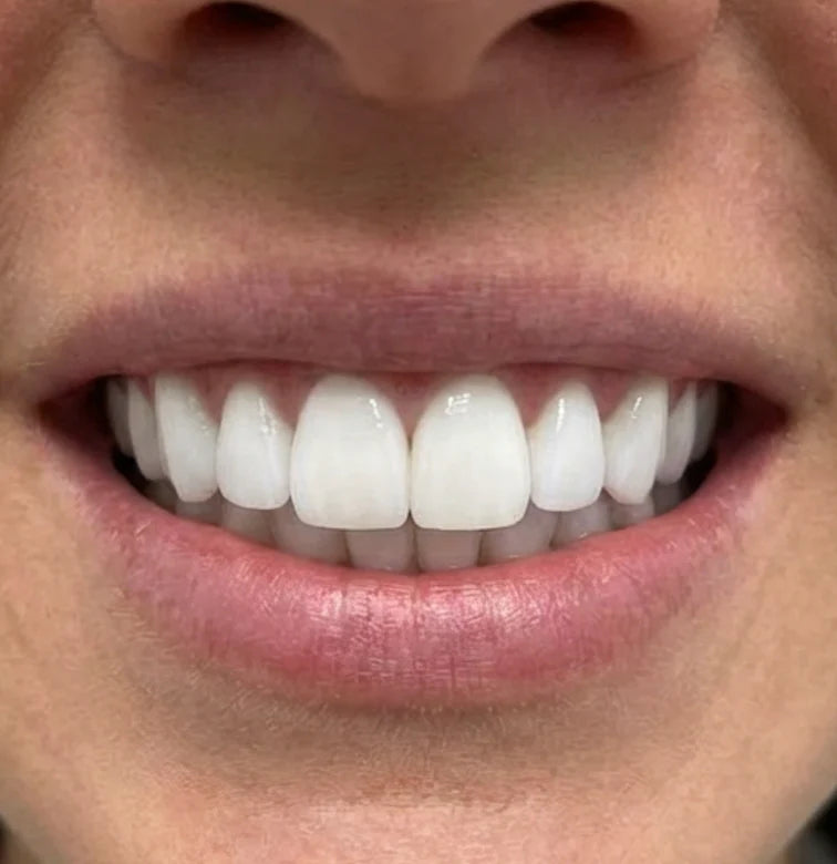 Si bien nuestro sistema de blanqueamiento es seguro para usar con trabajos dentales, tenga en cuenta que solo blanquea los dientes naturales. Las coronas, carillas y otros materiales dentales no cambiarán de color.